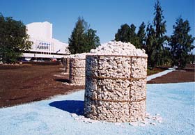 今回最も遅くヘルシンキ入りして、もっとも早く仕事を片づけた西さん。昨年改装したフィンランディア・ホールの古い外壁材をカゴに入れて並べたもの。あっという間の出来事で写真を撮る暇もなかった。 Harvest(収穫)というより、僕はどうしても公園のゴミバコを思い出してしまうのですが...。