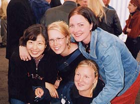会場 モヒカンのスケートボーダー、SIMO たくましい(?)女子学生 左から日本語堪能SAM Iさん、関西弁堪能RUUTさん、あす香、