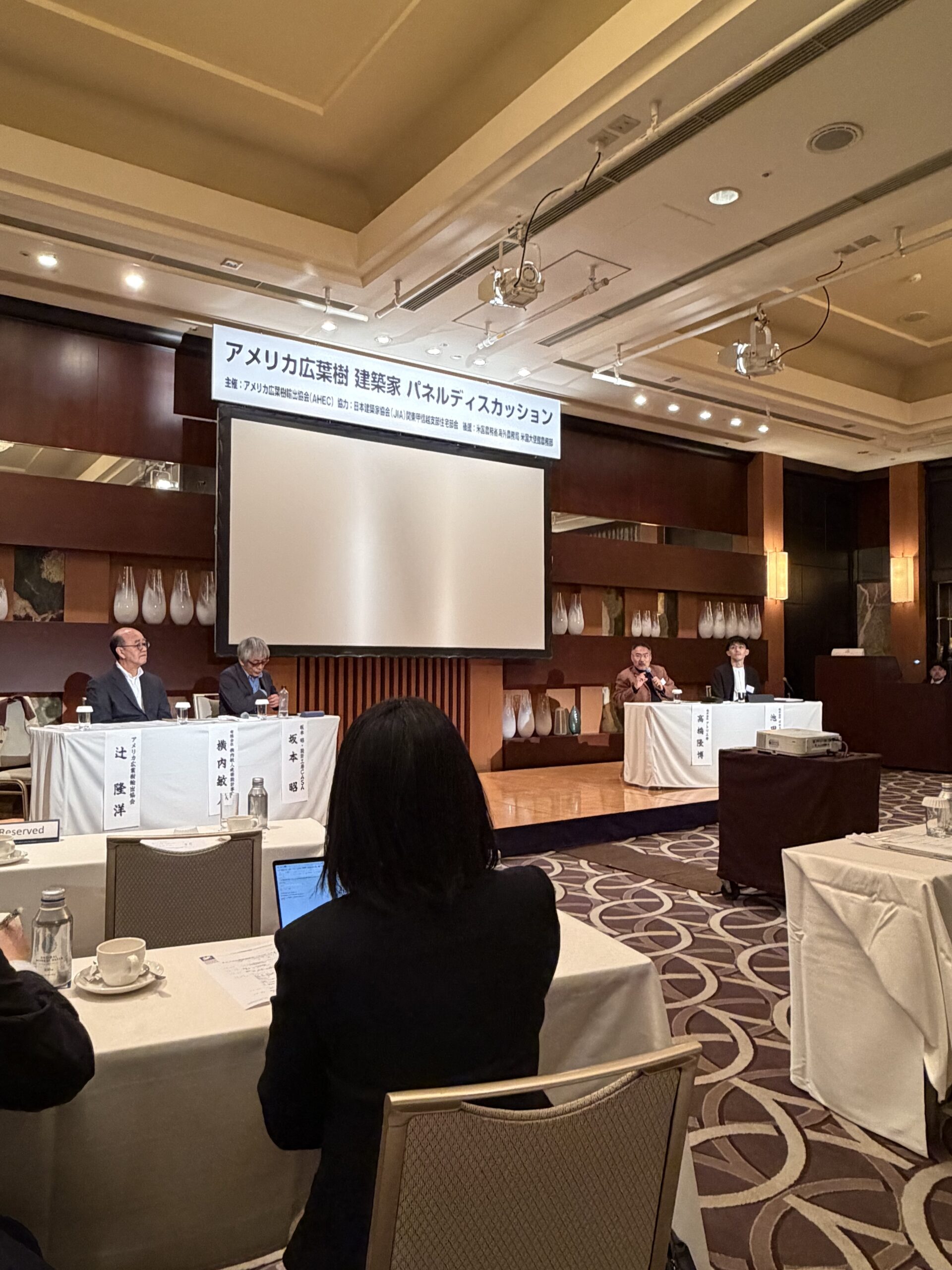 JIA住宅部会協力によるアメリカ広葉樹建築家パネルディスカッションへ。パネリストのひとり横内敏人さんとは久しぶりの再会。