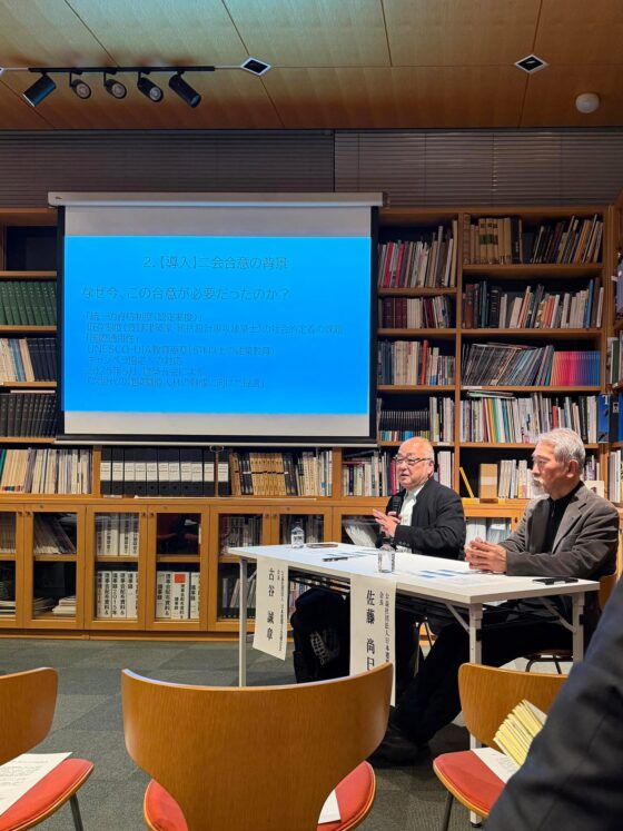なんといっても建築設計界の二大巨頭、日本建築士連合会の古谷誠章会長と、JIA日本建築家協会の佐藤尚巳会長とが肩を並べてビジョンを語る絵はとても痺れるものがありました。